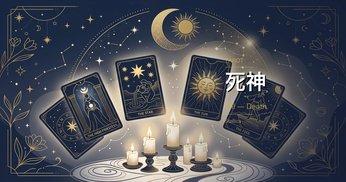 前後のカード(13番と14番): 死神で破壊された後に、節制が調和を取り戻す流れです。